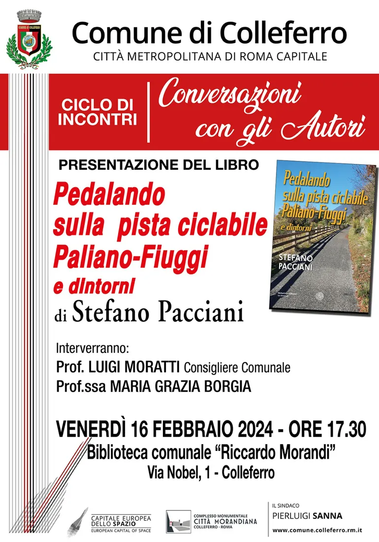 Si parte Venerdì 16 Febbraio alle ore 17.30 presso la Biblioteca Comunale R. Morandi con Stefano Pacciani, autore del libro “Pedalando sulla pista ciclabile Paliano-Fiuggi e dintorni”.
