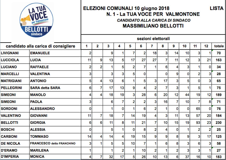 | CANDIDATO SINDACO | LISTA | VOTI | % VOTI |