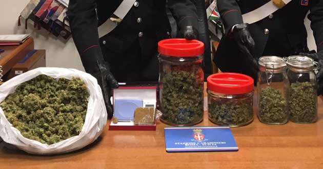 I Carabinieri, inoltre, hanno trovato all’interno dell’abitazione un’intera stanza adibita a serra, con tanto di aeratori con sistema di filtraggio, vasi e lampade, tutto predisposto per la coltivazione indoor di piante di marijuana.