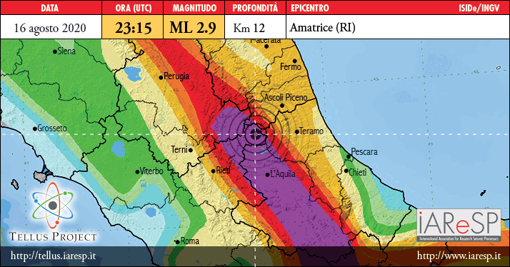 AMATRICE – Un terremoto di magnitudo ML 2.9 è stato registrato 3Km a nord del centro di Amatrice (5Km a Sud Est di Accumoli) alle ore 1:15:53 di oggi, 17 Agosto [ORA UTC 16-08-2020 – 23:15:53).