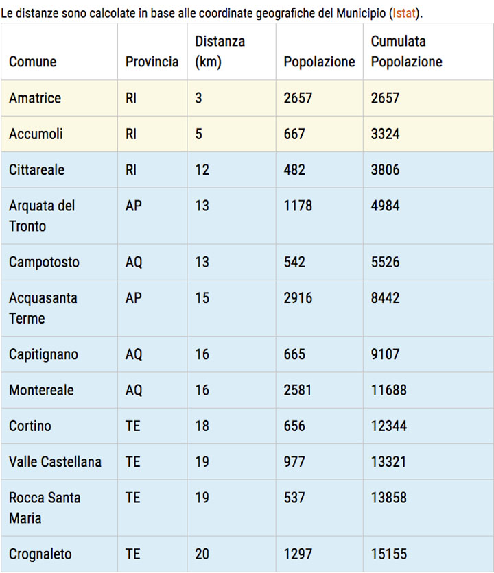 Comuni entro 20Km dall’epicentro