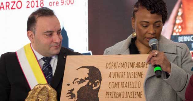 «Quest’anno è un anno speciale per me, per la mia famiglia, e per gli Stati Uniti d’America. Ma anche per il mondo intero poiché celebriamo il 50esimo anniversario della morte di mio padre- ha aggiunto fieramente – dal 4 al 9 Aprile, infatti, commemoreremo questa importante ricorrenza con diversi eventi. In realtà abbiamo già iniziato il 15 gennaio scorso con il giorno della King Holiday che corrisponde proprio con la data di nascita di mio padre. In questa occasione abbiamo chiesto a tutte le persone del nostro paese e a quelle delle altre nazioni di tutto mondo di unirsi a noi facendo 50 gesti di amore e gentilezza».