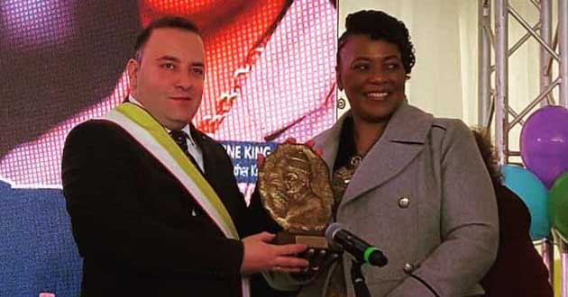 ANAGNI – «Quella di Martin Luther King è una vita che bisogna continuare a raccontare, soprattutto alle giovani generazioni, che oggi vedo presenti e numerose… La prego quindi cara Signora Bernice Albertine King, di ricevere il nostro Premio Internazionale Bonifacio VIII “alla memoria” di suo padre Martin Luther King, costruttore di pace, per il suo contributo alla lotta per la libertà e la giustizia per i neri negli Stati Uniti d’America e per l’aver ispirato tutta l’umanità attraverso il suo messaggio di amore, perdono, dignità e unità del genere umano».