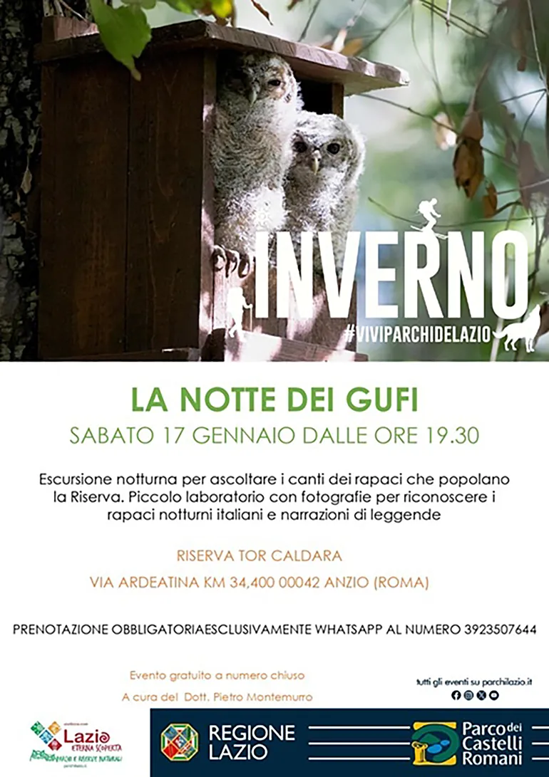 Anzio. Sabato 17 Gennaio “La Notte dei Gufi” alla Riserva Naturale Regionale Tor Caldara