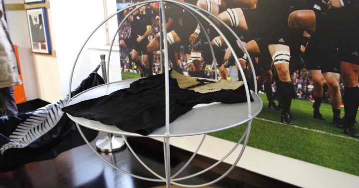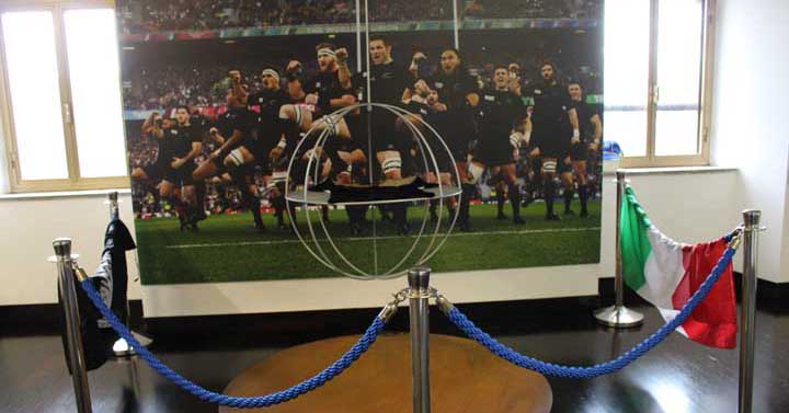 La maglia in esposizione apparteneva al giocatore James “Jimmy” Hunter e a distanza di centotredici anni da quell’impresa, ha lasciato il New Zealand Rugby Museum di Palmerston North, fondato da un’altra stella del rugby John Sinclair ed aperto al pubblico nel 1977, ed è tornata in Europa! Esposta nella sala dedicata agli All Blacks, è stata inserita all’interno di un globo stilizzato, opera dell’arch. Roberto Felici. .