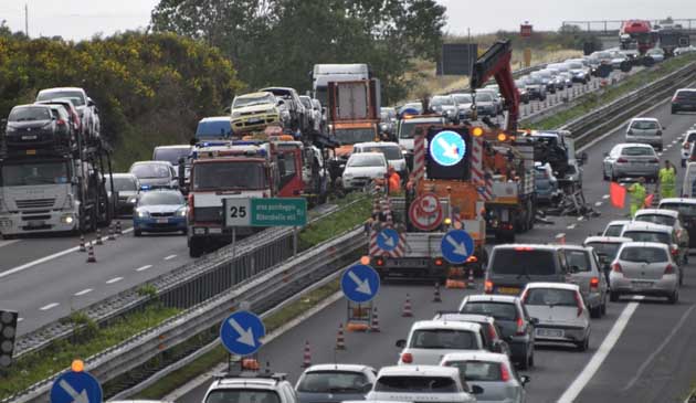 L’incidente è avvenuto al km 25 e sul posto sono subito intervenuti gli agenti della Polizia Stradale, i Vigili del Fuoco ed i sanitari del 118 con un paio di ambulanze. Fortunatamente solo 3 persone, compreso il conducente della bisarca, hanno avuto necessità di ricorrere a cure mediche.