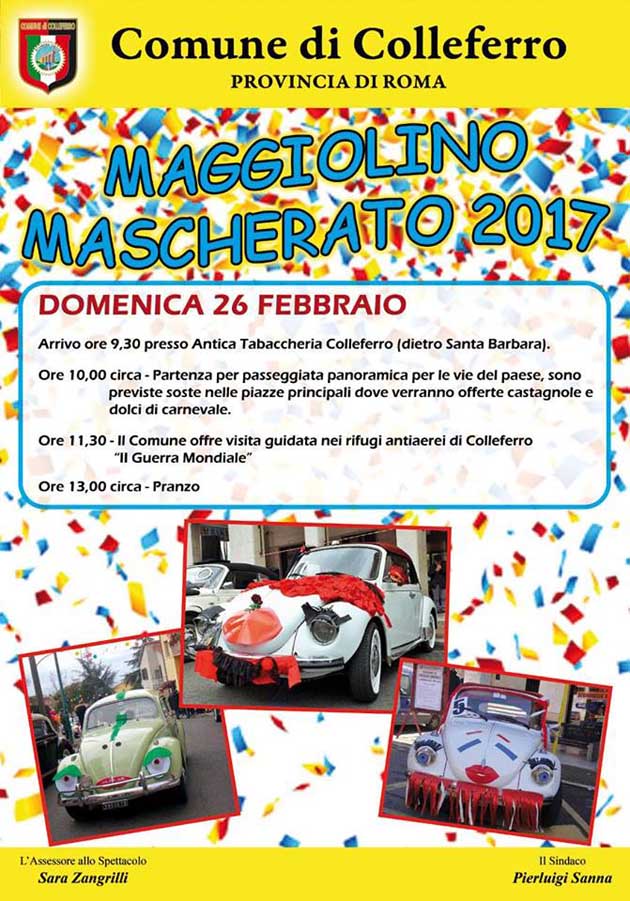 Carnevale Colleferro 2017. Sfilata di carri e gruppi mascherati, musica live, Maggiolini e Vespe mascherati. Frappe, castagnole e coriandoli per tutti…
