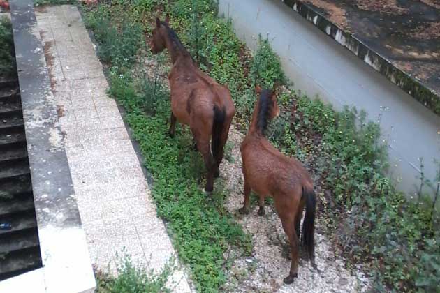 Come se non bastassero le mucche, nella giornata di ieri, un paio di cavalli hanno fatto la loro passeggiata nel cortile della scuola media.