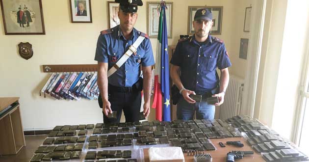 Cassino. Corriere della droga napoletano arrestato da Polizia e Carabinieri. Sequestrati 21 Kg di hashish, un chilo e mezzo di coca oltre a 60 cartucce