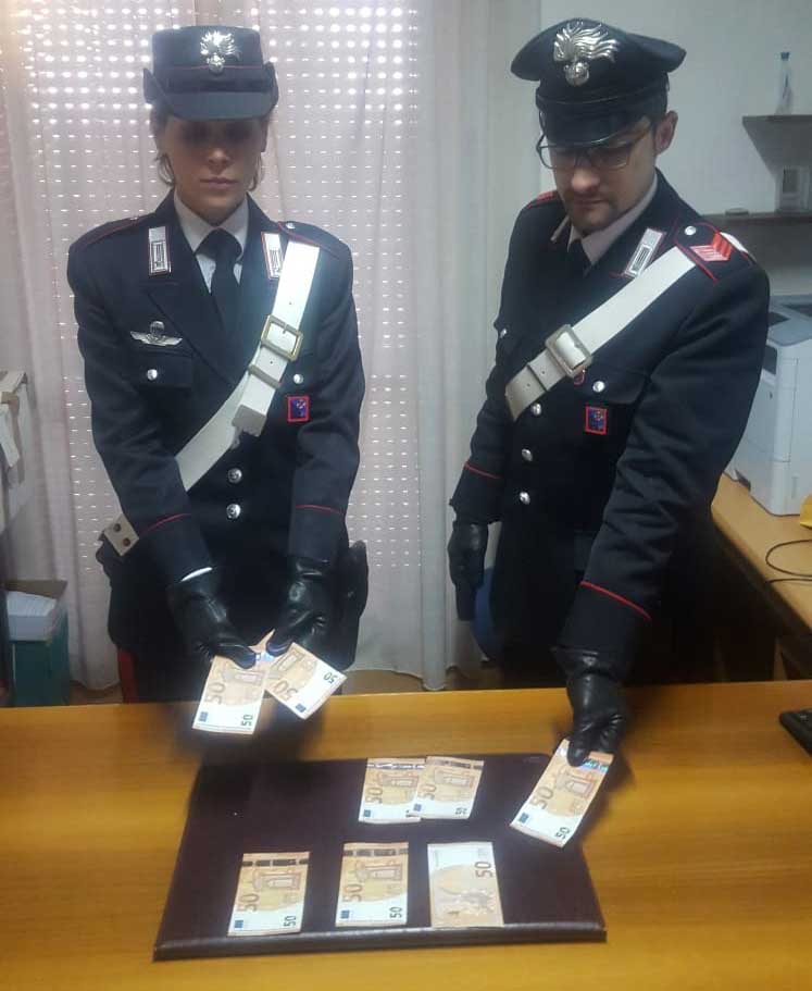 I militari operanti intercettavano i due mentre uscivano da un bar – tabacchi del luogo ove avevano appena acquistato delle sigarette pagando con una banconota da euro 50 risultata falsa.