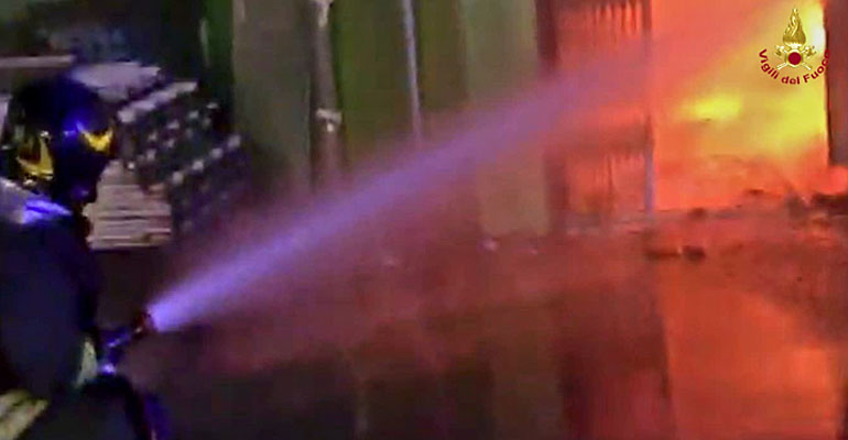 Sul luogo dell’incendio sono intervenute le Forze dell’Ordine – Polizia di Stato e Carabinieri – ambulanze del 118 e ben 15 squadre dei Vigili del fuoco, arrivate sul luogo dell’incendio con diversi mezzi, tra cui l’autoscala e un carro schiuma.