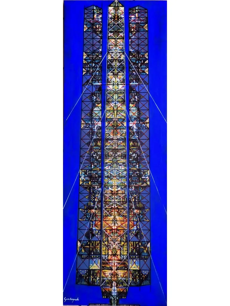 La recente opera pittorica la Torre “Cattedrale di Luce” di Francesco Guadagnuolo prende vita come narrazione Transrealista, un incontro fluido tra l’inventiva-concretezza-industriale e l’immaginario digitale. Si presenta come un’opera che fonde memoria e slancio spirituale, trasformando l’Antenna RAI di Caltanissetta in un faro sospeso tra cielo e terra. Sulla grande tela l’artista riversa fasci di luce policroma che avvolgono la struttura metallica, e arabeschi frattali ne moltiplicano le geometrie, dando vita all’illusione di tre Torri fuse in un unico movimento ascensionale.
