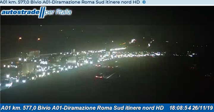 5 Km di coda tra il casello di San Cesareo della Diramazione Roma Sud e la confluenza in A1 in direzione Napoli (Autostrade per l’Italia consiglia di uscire al casello di San Cesareo, percorrere la viabilità ordinaria [SS6 – Casilina] ed entrare in A1 al casello di Valmontone)