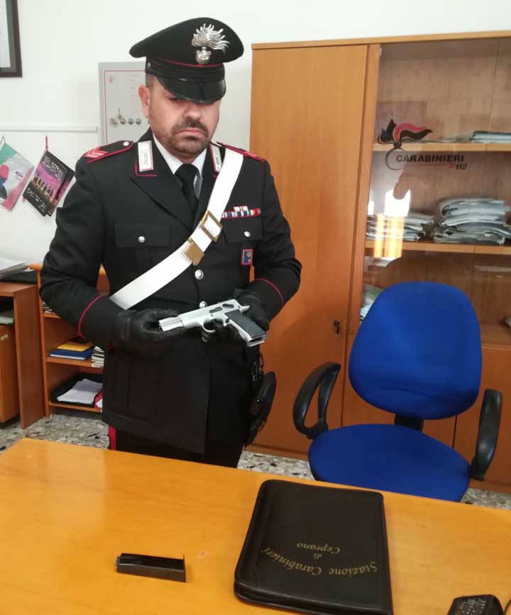 A seguito di una segnalazione pervenuta alla Centrale Operativa circa la presenza di una persona sospetta, i militari operanti intervenivano all’esterno di un bar di Ceprano ove procedevano ad identificare l’uomo il quale, a seguito di perquisizione personale, veniva trovato in possesso di una pistola calibro 9×21 ed il relativo caricatore con all’interno 7 cartucce, occultata nella tasca posteriore dei pantaloni.