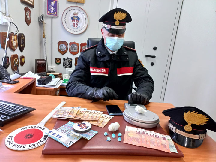 All’uomo venivano inoltre sequestrate svariate banconote da 50 e da 10 euro, ritenute provento dell’illecita attività svolta negli ultimi giorni.