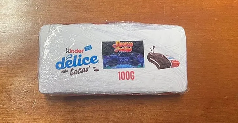 Tale situazione portava i militari ad approfondire l’ispezione e rinvenire, confezionato come una “Kinder Delice”, 1 panetto di 100 grammi di hashish.