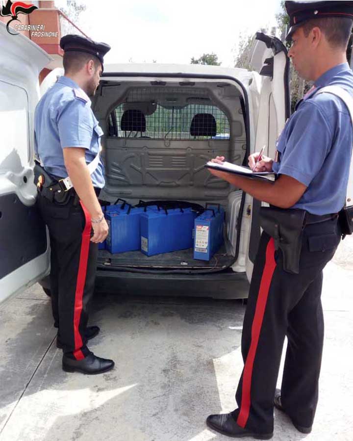 I Carabinieri, impegnati in un servizio di controllo del territorio finalizzato alla repressione dei reati, hanno attivato opportune indagini immediatamente dopo il furto di quattro batterie utilizzate per alimentare il ponte ripetitore in Colfelice di una nota società di telefonia.
