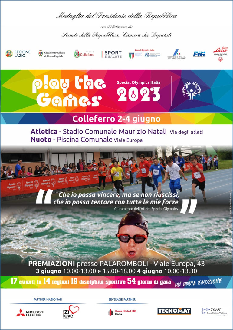 Un grande evento nazionale organizzato in collaborazione con il Comune di Colleferro per le discipline più praticate del movimento (atletica e nuoto), che propone allenamenti e competizioni per persone con disabilità intellettiva al fine di promuovere, attraverso lo sport, una cultura dell’inclusione che educhi alla comprensione ed alla valorizzazione della diversità in ogni sua più ampia espressione.