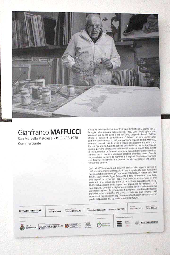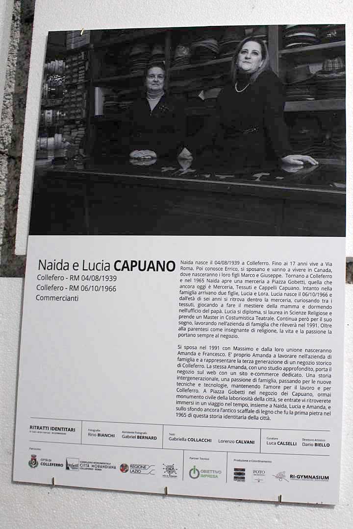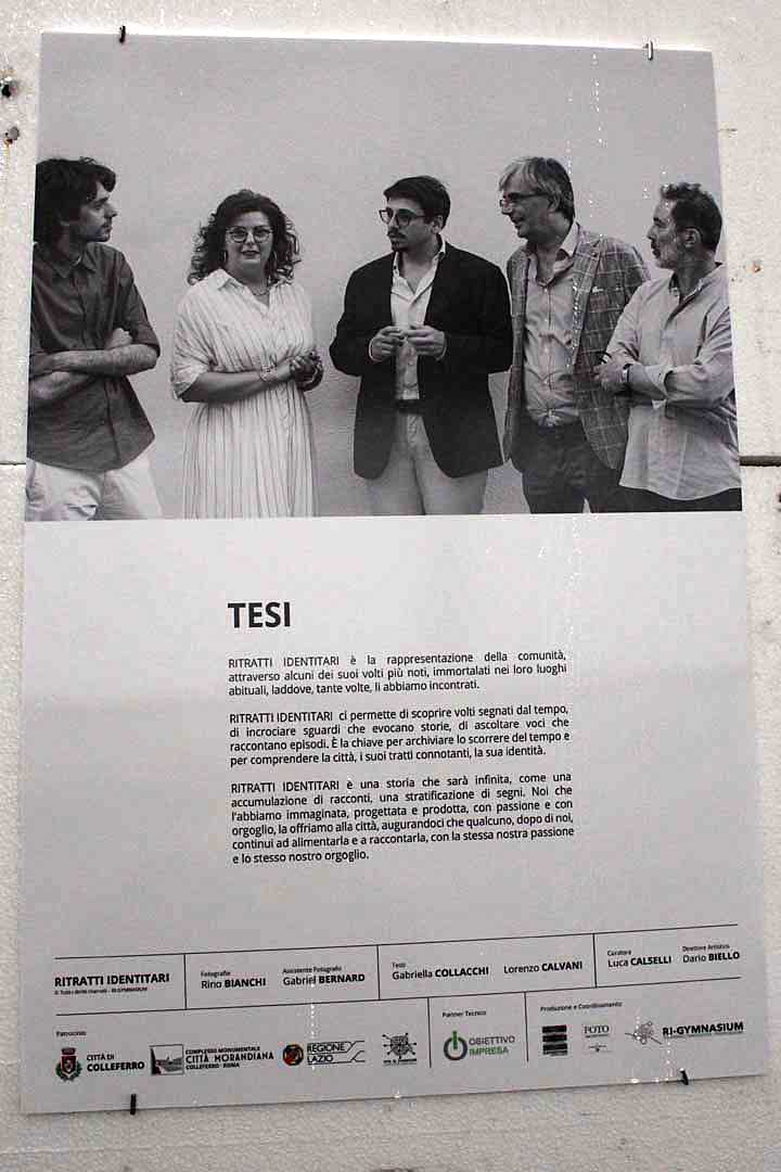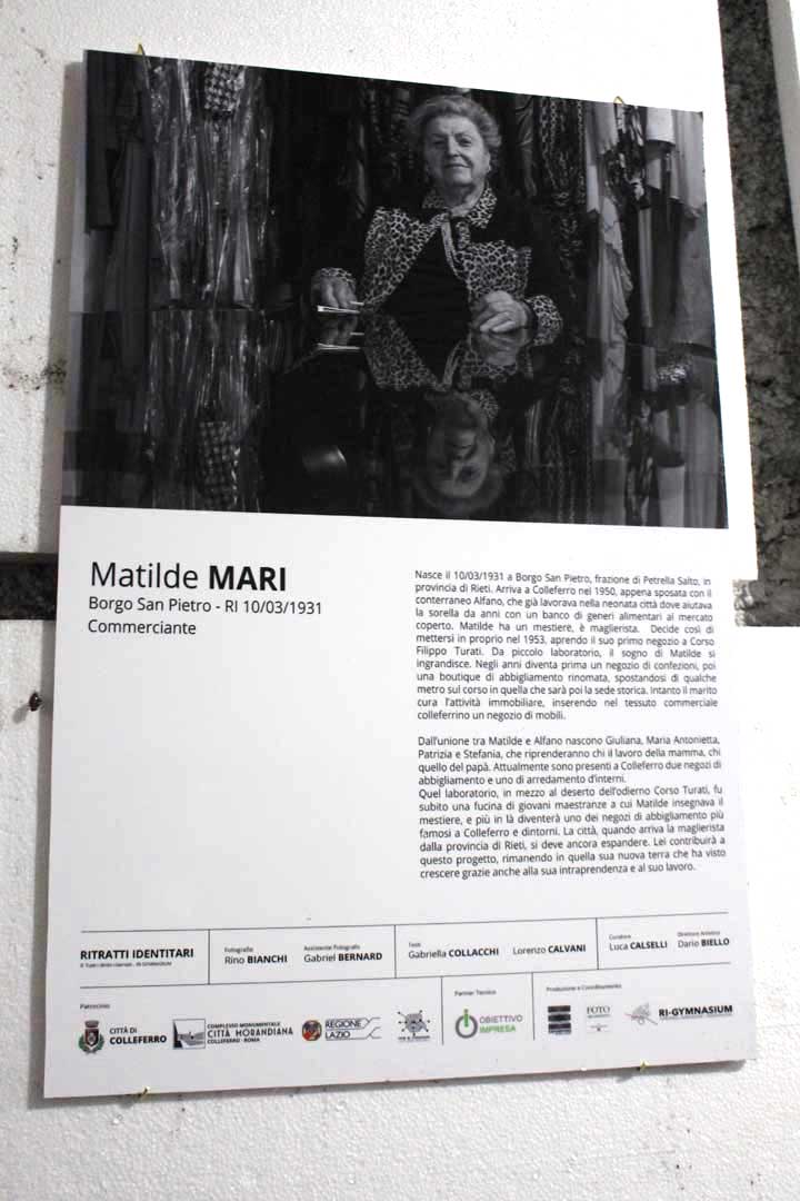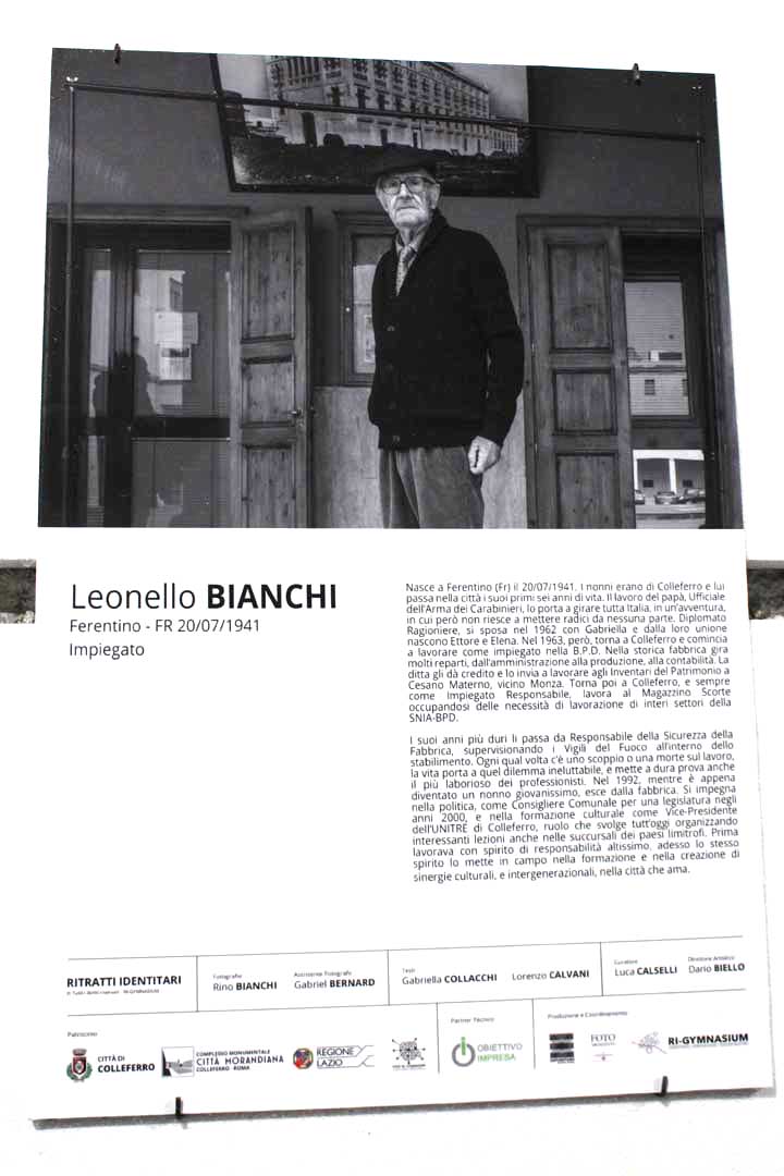 Con “Ritratti identitari” vengono evidenziati, attraverso le storie ed i volti immortalati da Rino Bianchi, «i segni connotanti di persone provenienti da ogni parte del paese che, nel corso degli anni, hanno costruito una comunità nuova, forte, unita ed operosa».