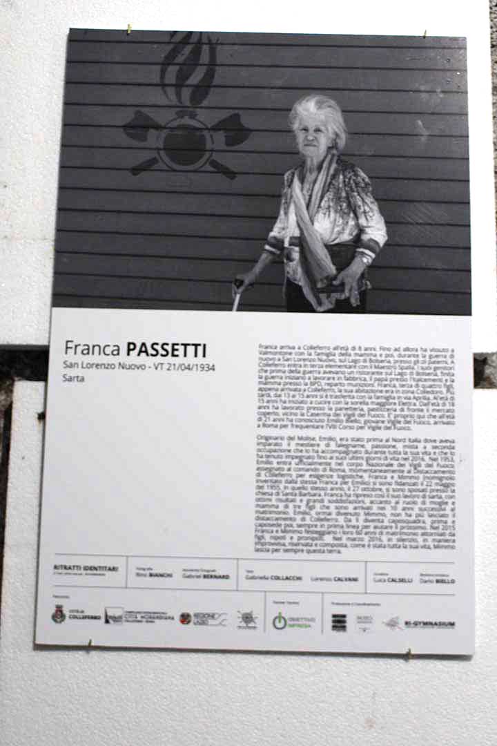 La mostra è davvero suggestiva ed ha molto commosso il pubblico presente con i suoi 21 scatti, accompagnati da testi che ne riassumono le vicende umane e professionali: Leonello Bianchi, Gianfranco Maffucci, Angelo Cerbara, Don Luciano Lepore, Ettore Antico, Gerardo Rosamilia, Renzo Rossi, Valter Brocchetti e Franco Matrigiani, Capuano, Giuseppe Carpino, Fulvio Marcantonio e Anna Maria Sordi, Orlando Giuliani, Gemma Masella, Gianfranco Siniscalchi, Giorgio Cattonar, Franca Passetti, Tucarda Ricci, Antonietta Cocciò, Naida e Lucia Capuano.