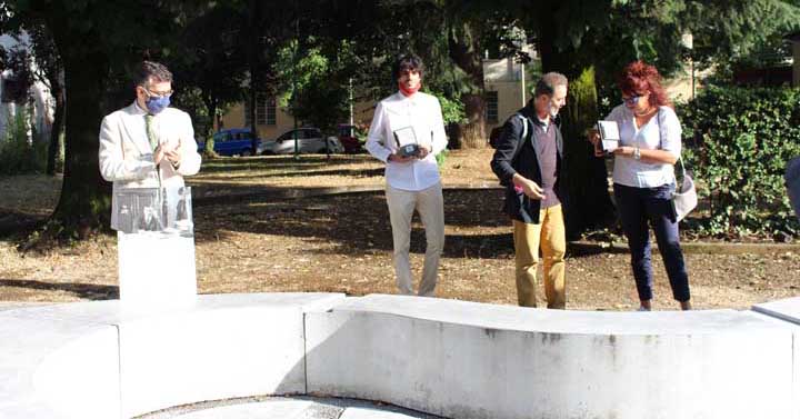 Durante il vernissage il Sindaco Pierluigi Sanna ha donato a Rino Bianchi, Gabriella Collacchi, Lorenzo Calvani e Renzo Rossi la targa “Colleferro città della Cultura” per il lavoro svolto.