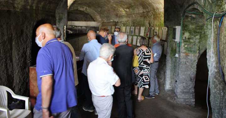 La seconda parte dell’evento ha previsto la visita della mostra allestita nei Rifugi di S. Barbara, luogo che, lo ricordiamo, è tenutario della storia della città. In questi ambienti, oggi in parte musealizzati, trovarono infatti rifugio dai bombardamenti aerei durante la seconda guerra mondiale, migliaia e migliaia di cittadini per quasi un anno.