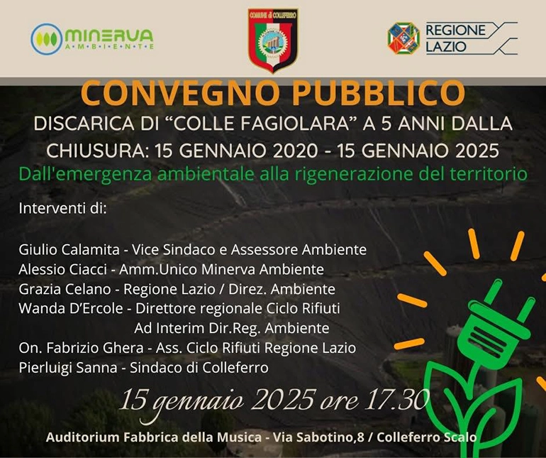 Colleferro. A 5 anni dalla chiusura della Discarica di Colle Fagiolara, convegno pubblico “Dall’emergenza ambientale alla rigenerazione del territorio”