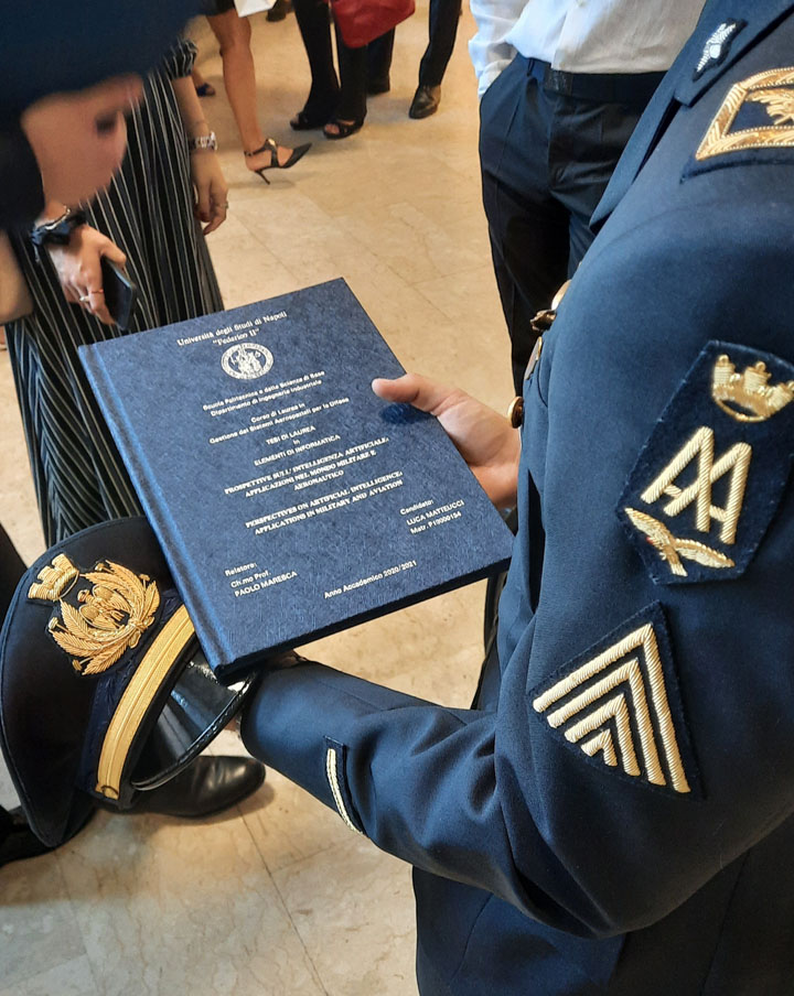 Fra questi il colleferrino capocorso ruolo piloti Luca Matteucci, laureatosi con 110 e lode presentando un’innovativa tesi riguardante le applicazioni dell’intelligenza artificiale nel mondo militare e aeronautico.