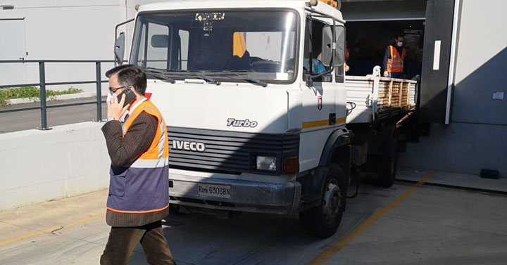 Gli operai dell’ufficio manutenzione, si sono recati presso la sede dell’azienda per ritirare il materiale donato al nostro comune.