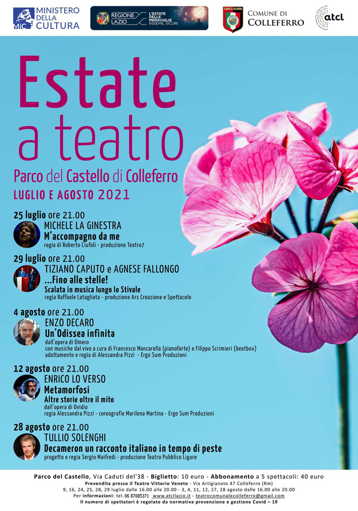 COLLEFERRO – Il 25 Luglio 2021 avrà inizio la Stagione Teatrale Estiva presso il Parco del Castello di Colleferro.
