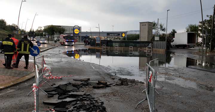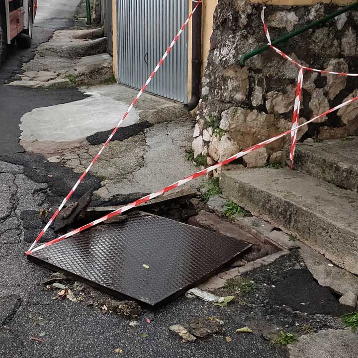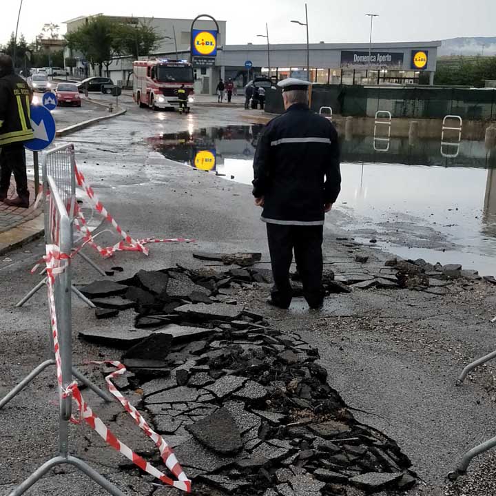 Anche qui la viabilità è compromessa, rimanendo a disposizione un unico senso di marcia, anche a causa dell’asfalto che è stato letteralmente sradicato dal fondo dalla violenza dell’acqua che ha creato l’allagamento.