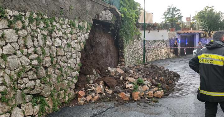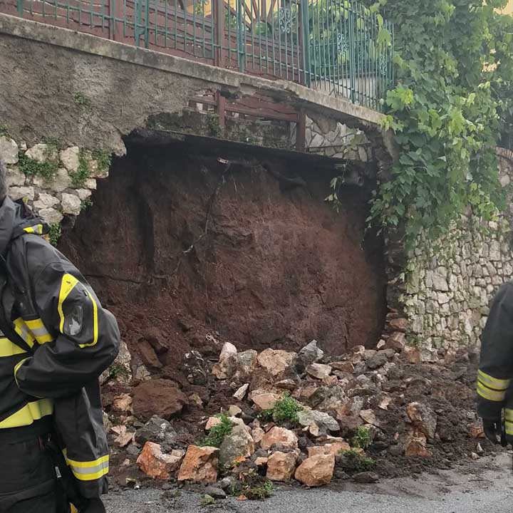 La strada è stata chiusa, mentre sono in corso i rilievi dei Vigili del Fuoco per valutare le condizioni di stabilità del livello soprastante.