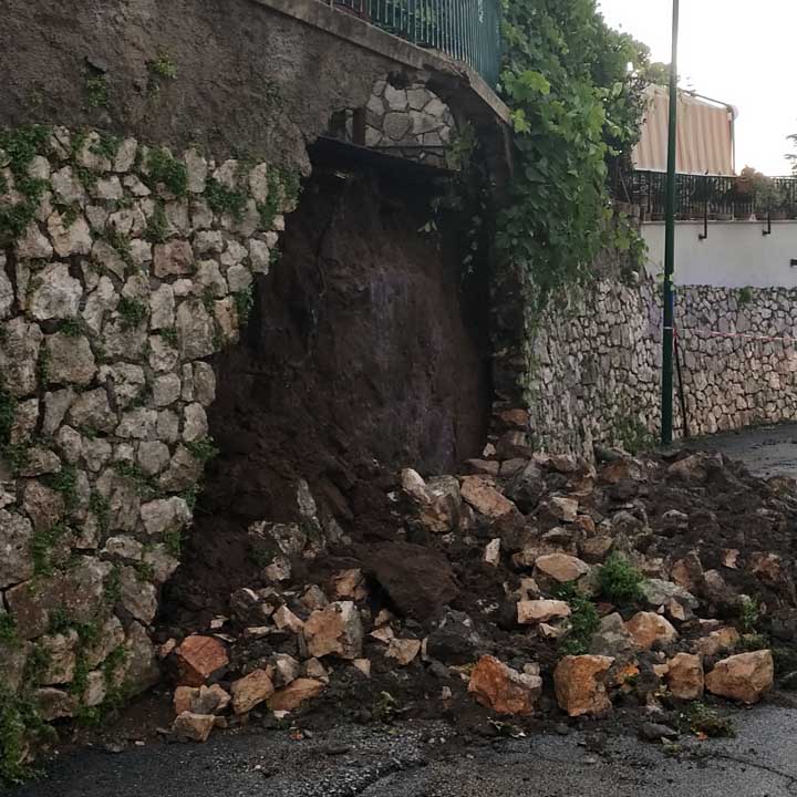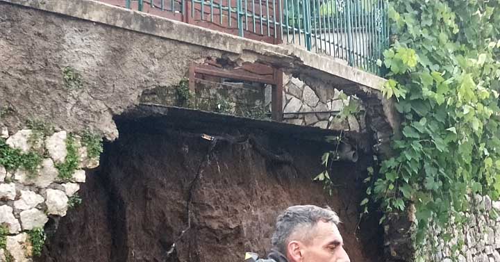 Il danno più grave al momento sembra essere quello registrato in Via Pontinia, all’altezza del civico 58, dove è letteralmente crollato il muro di contenimento (in foto) del terreno sottostante dello spazio aperto di un’abitazione che ha l’ingresso dalla parte opposta su Via Colle di Mezzo.
