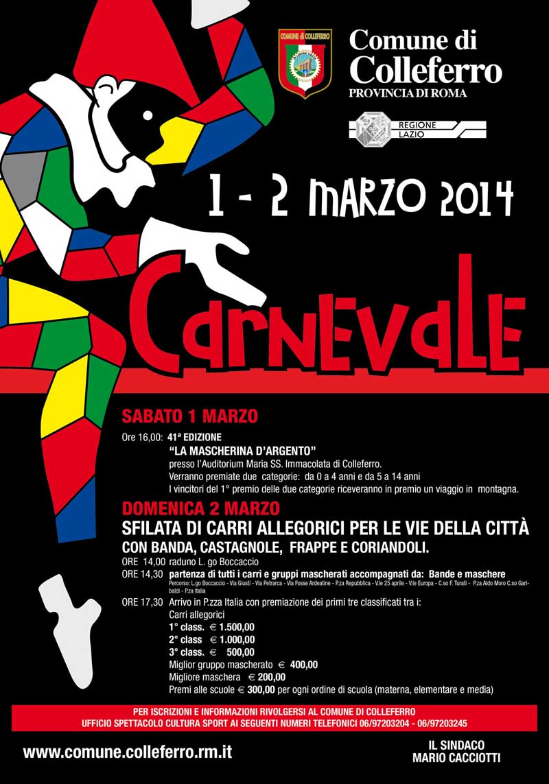 COLLEFERRO (RM) – Dopo un primo assaggio di Carnevale con la sfilata dei “Maggiolini mascherati”, la festa entra nel vivo questo fine settimana con i tradizionali concorsi delle maschere e dei carri allegorici.