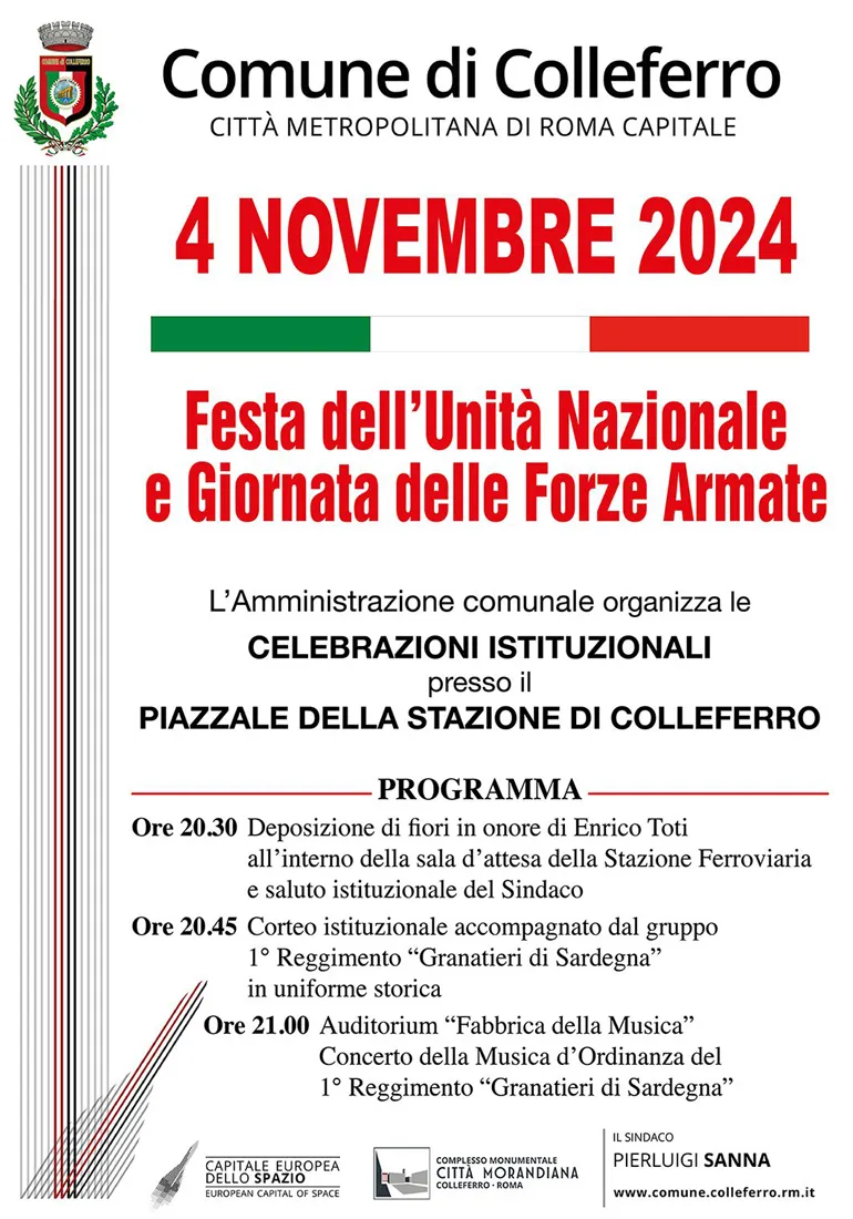 Colleferro celebra il 4 Novembre, Festa dell’Unità Nazionale e Giornata delle Forze Armate, con il 1° Reggimento “Granatieri di Sardegna”