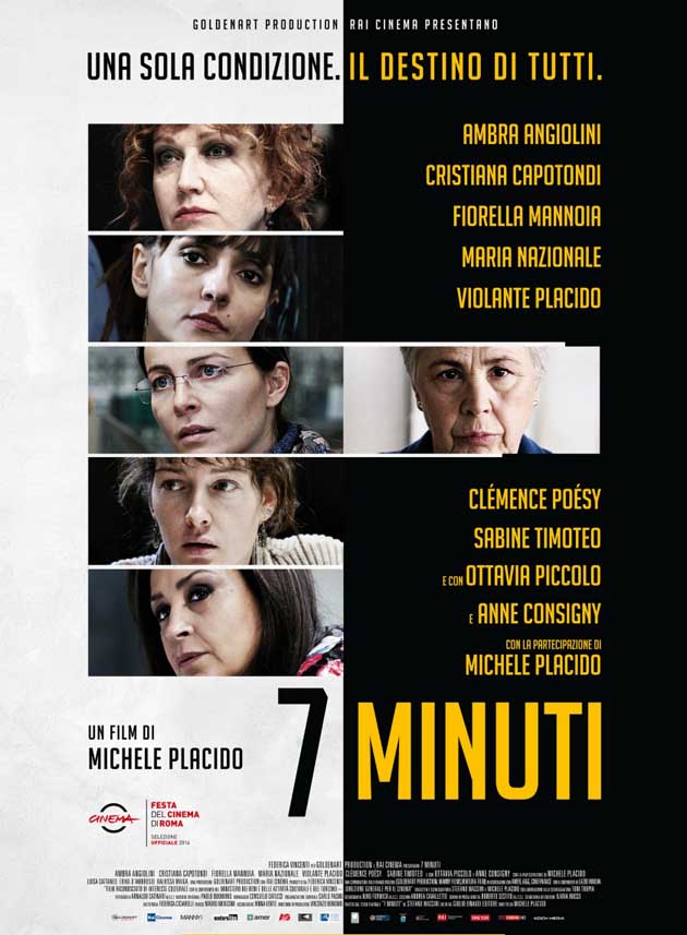 “7 minuti”, diretto da Michele Placido con un cast d’eccezione, che segue “Suffragette” che lo scorso anno affrontava il tema del voto alle donne, è un film che evidenzia, con cruda realtà, la difficile scelta di un gruppo di donne, componenti di un consiglio di fabbrica, a cui spetta decidere sul futuro dell’azienda in cui lavorano, rinunciando a sette minuti di intervallo al giorno. Niente di fronte alla certezza del lavoro, ma quei sette minuti rappresentano in modo spietato il tema dell’erosione dei diritti dei lavoratori e soprattutto delle donne, ma anche di ogni essere umano messo di fronte a scelte drammatiche.