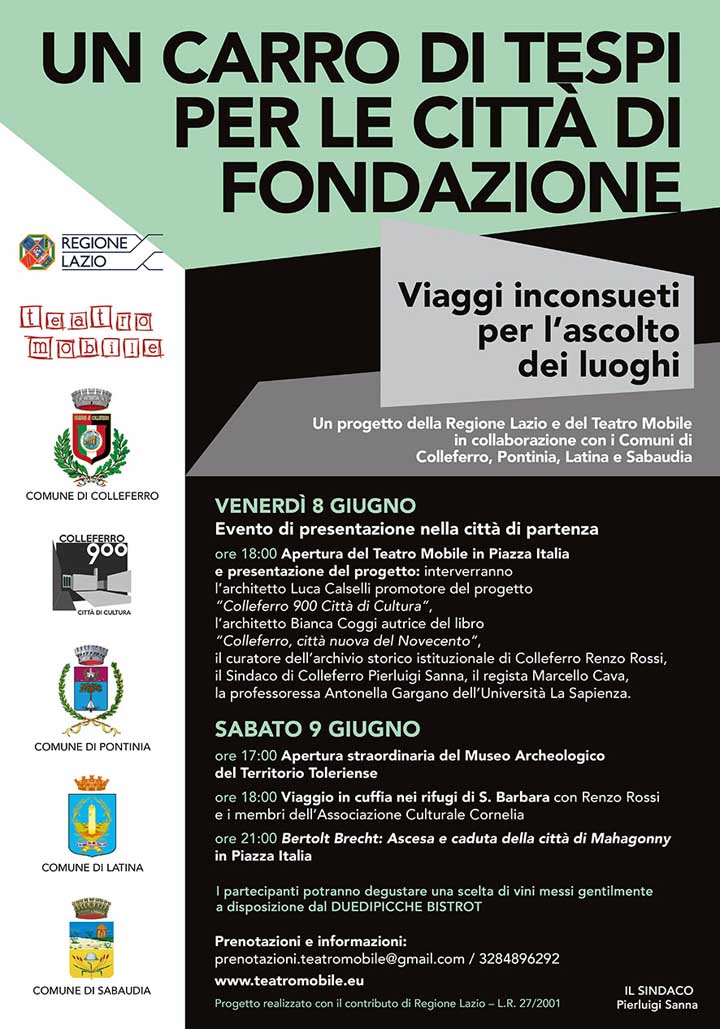 COLLEFERRO – Tra i progetti che la Regione Lazio ha finanziato per la conoscenza, il recupero e la valorizzazione delle città di fondazione, figura anche quello denominato “Un carro di tespi per le città di fondazione”.