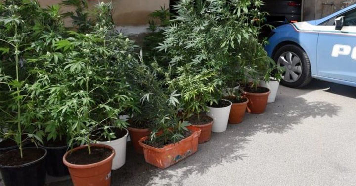 Nel corso della perquisizione domiciliare presso l’abitazione dell’arrestato, gli agenti rinvenivano, in prossimità dell’ingresso dell’abitazione, 10 piante di marijuana, alte fino a 130 cm coltivate in vaso; sul retro, a ridosso del pollaio, venivano rinvenute altre 14 piante di marijuana, anch’esse coltivate in vaso, di altezza di circa un metro, non ancora inflorescenti.
