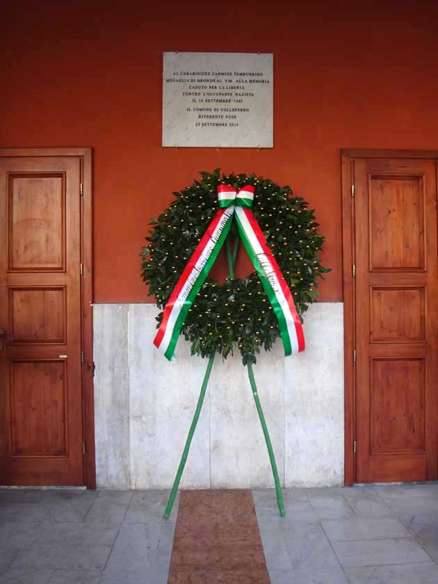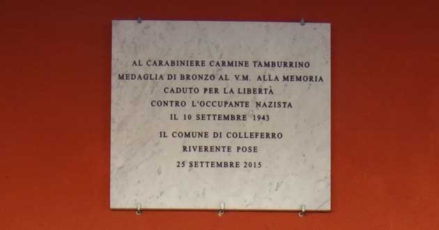 COLLEFERRO (RM) – Si è tenuta nella mattinata di Venerdì 27 Ottobre in Piazza Italia a Colleferro la commemorazione del sacrificio del Carabiniere Carmine Tamburrino, ucciso il 10 Settembre del 1943 in un’azione tesa a verificare la presenza delle forze occupanti naziste presenti nel nostro territorio: uno sparo improvviso lo colpì uccidendolo.