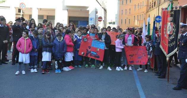 Negli interventi del Sindaco e del Ten. Col. Cotugno il ricordo del carabiniere e del suo sacrificio. Rivolti agli studenti li hanno esortati a non dimenticare chi ha combattuto e donato la propria vita per la patria e la libertà e li hanno invitati a riaccendere in ognuno l’amore di patria, che non deve essere inteso come sentimento antico.