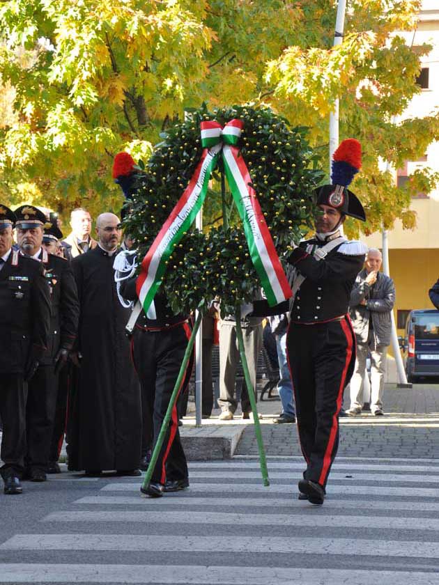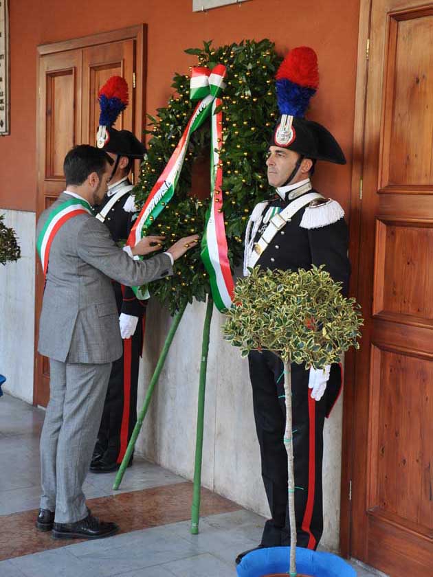 Una corona di alloro è stata poi deposta sotto la lapide collocata sotto il porticato sulla facciata anteriore del Municipio, mentre il picchetto d’onore intonava il “Silenzio”, con la benedizione del Cappellano Militare