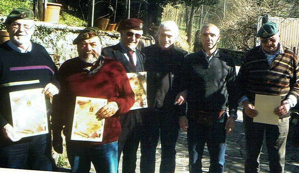 Alla rimpatriata erano presenti, tra gli altri, il Gen. C. A. Monticone e il colleferrino Franco Gentili oltre ai parà Cervella, Piccinini, Padovani, il Col. degli arditi Lenti e il Gen. Giuliano. (insieme nella foto)