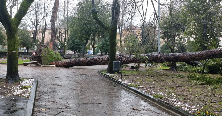 Intanto, dopo aver tagliato i rami che invadevano la sede stradale, ed aver ridotto la chioma, l’area è stata transennata e nei prossimi giorni si provvederà alla rimozione totale del pino ed al ripristino dell’uso in sicurezza dei giardini.