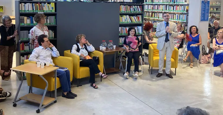 Ad accoglierla c’erano il Sindaco Pierluigi Sanna e l’Ass. Diana Stanzani, mentre a dialogare con la scrittrice il era presente curatore del saggio Eugenio Murrali, giornalista e autore di libri, tra cui, con Dacia Maraini e prefazione di Dario Fo, “Il sogno del teatro. Cronaca di una passione” (BUR, 2013).
