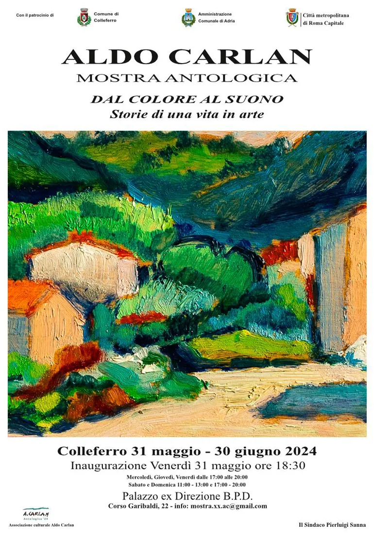 COLLEFERRO – Sarà inaugurata Venerdì 31 Maggio alle ore 18.30, negli spazi espositivi del Palazzo ex Direzione Bpd di Corso G. Garibaldi 22 a Colleferro, la mostra antologica “Dal colore al suono. Storia di una vita in Arte” dedicata ad Aldo Carlan a venti anni dalla scomparsa.