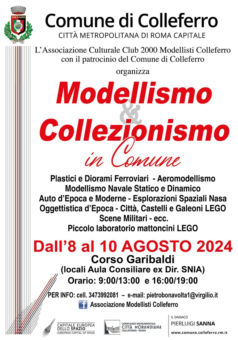 L’Associazione Culturale Club 2000 Modellisti Colleferro, con il patrocinio del Comune di Colleferro, organizza tre giornate per appassionati di modellismo e collezionismo.