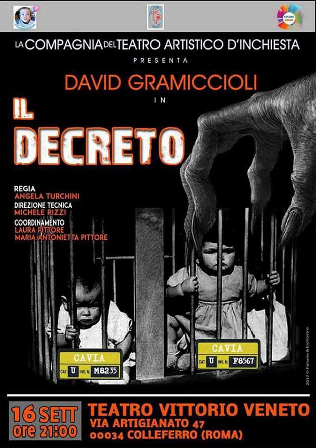 «Il Decreto. Tutta la verità sul decreto Lorenzin nella nuova pièce teatrale di David Gramiccioli Giornalista, inviato di guerra, narratore teatrale, autore delle sue stesse opere, già Premio Diritti Umani, David Gramiccioli un uomo straordinario soprattutto per la sua grande umanità.