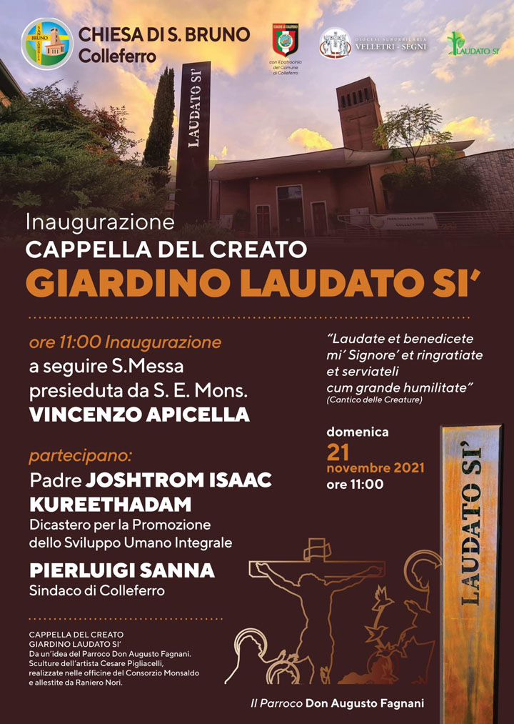COLLEFERRO (Eledina Lorenzon) – Domenica 21 Novembre, solennità di Cristo Re e giornata dell’albero, presso la Parrocchia di San Bruno, verrà inaugurata “La Cappella del Creato” nel nuovo bellissimo “Giardino Laudato Sì”.