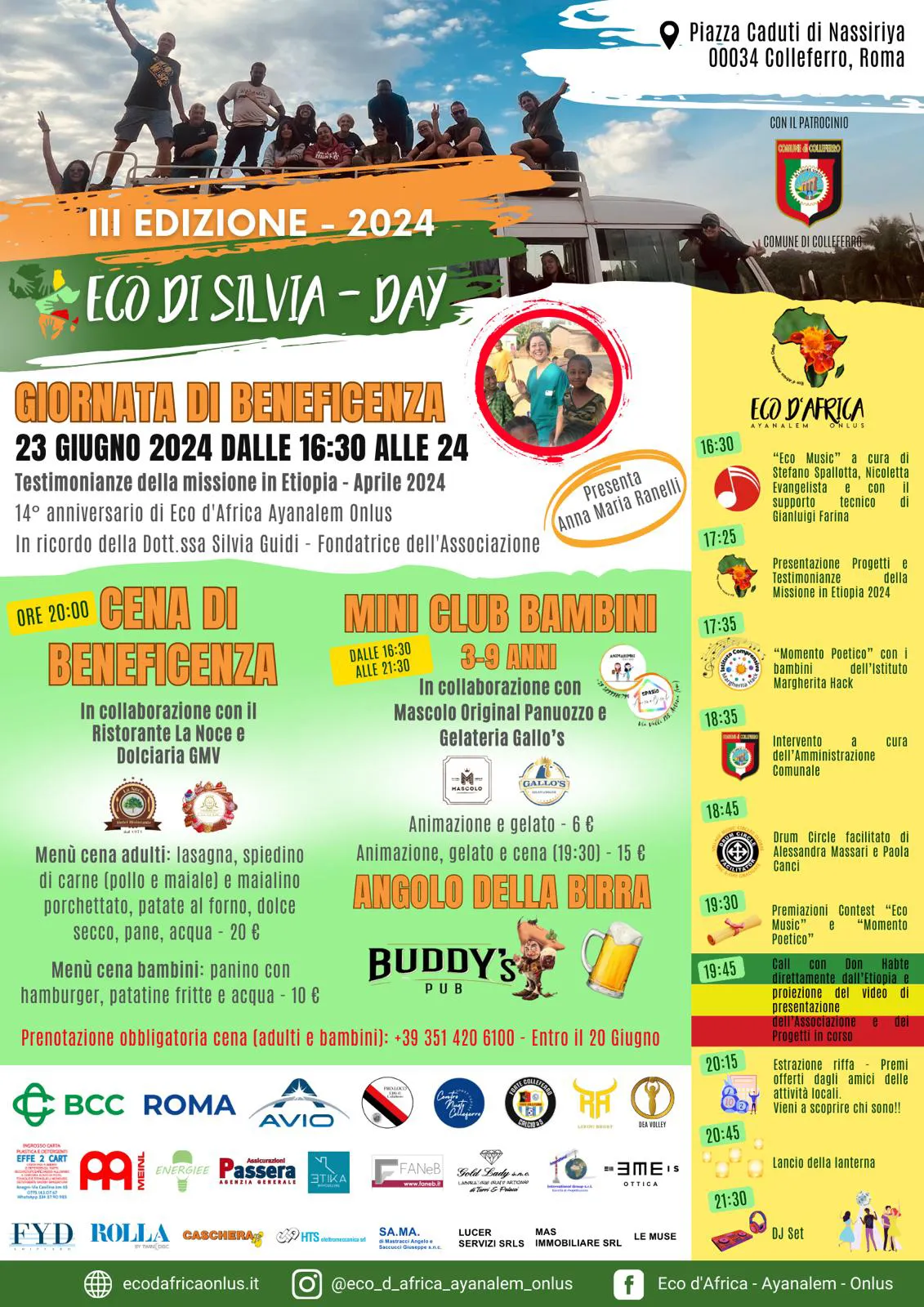 Lo scorso anno – nonostante il rinvio a causa delle condizioni meteo – l’evento ha avuto un notevole successo con una partecipazione incredibile. Adulti e bambini, volontari, amici, insomma i tanti che hanno conosciuto Silvia e la sua incredibile voglia di vivere e di dare, si sono riuniti in questa giornata, partecipando alle tante attività. Quest’anno l’evento, ancora orgogliosamente patrocinato dal Comune di Colleferro, si sposta da Colleferro Scalo a Piazza Nassiriya, con tanto intrattenimento per adulti – con la possibilità di cenare grazie alla collaborazione con il Ristorante La Noce e la Dolciaria Gmv – per bambini – con il Mini-Club – oltre all’angolo della Birra con il Buddy’s Pub.
