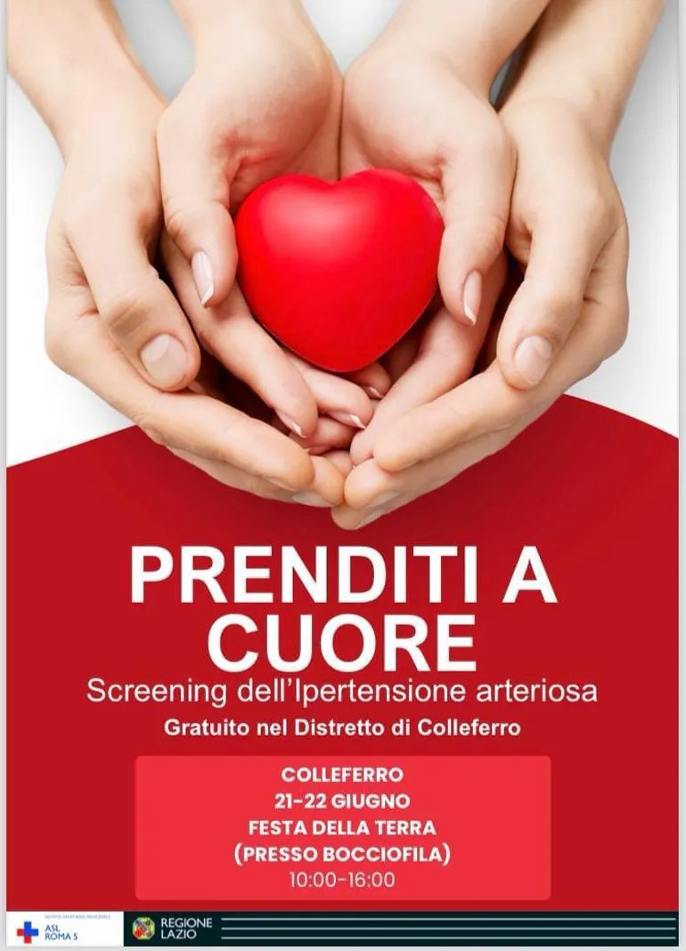 In primo luogo segnaliamo, in occasione della Festa della Terra, lo Screening (gratuito) dell’Ipertensione Arteriosa organizzato dal Distretto di Colleferro presso la Bocciofila nei giorni di Venerdì 21 e Sabato 22.